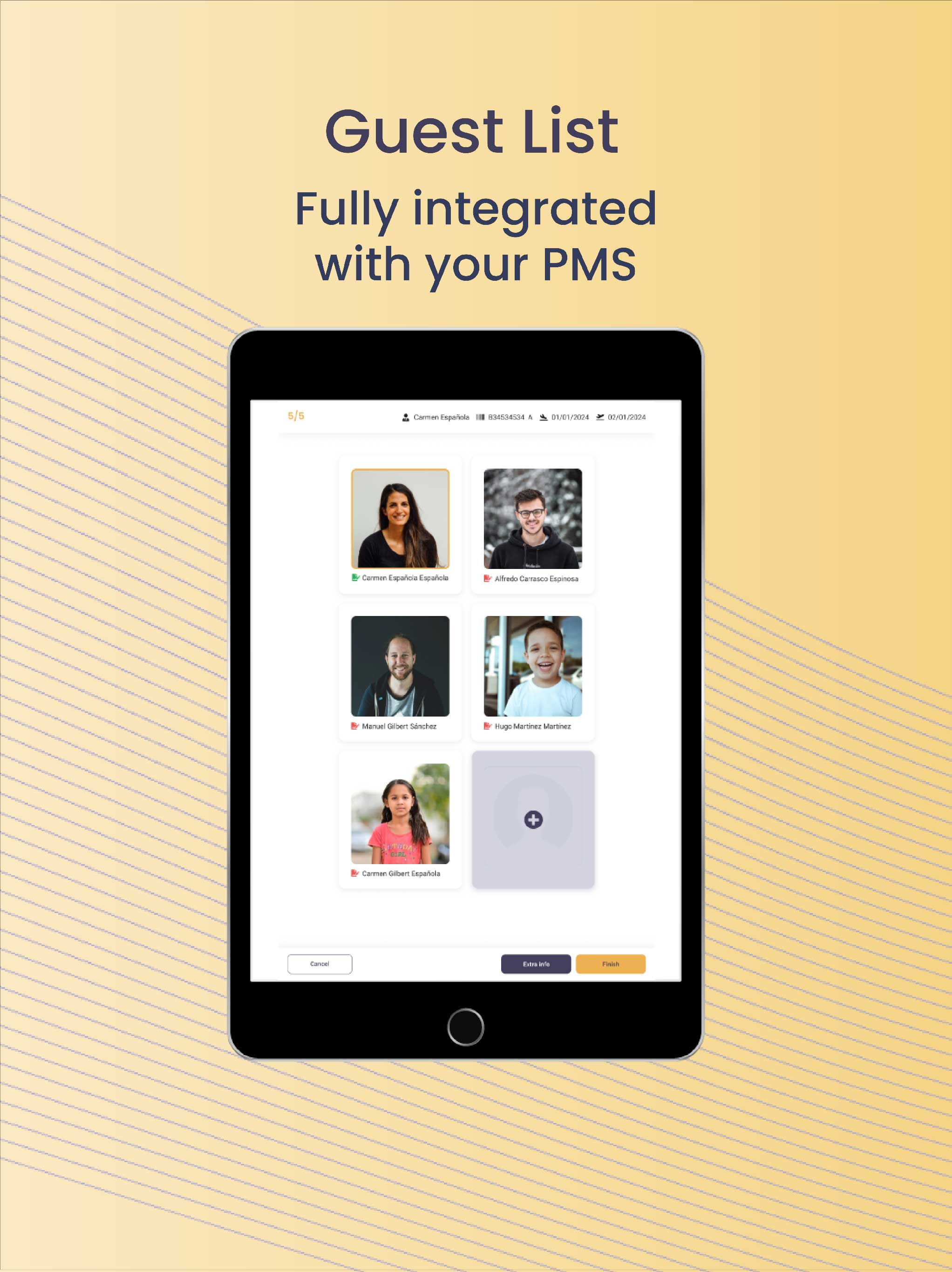 Check-in Revolution! Simplifies check-in operations and enriches the guest experience. A very user-friendly native cloud system, with a simple App to use in iPads, Android Pads and even smartphone. In just a few seconds you can scan a document, make your guest sign the Reg. Card, and send the whole information to your PMS. Easy, right?