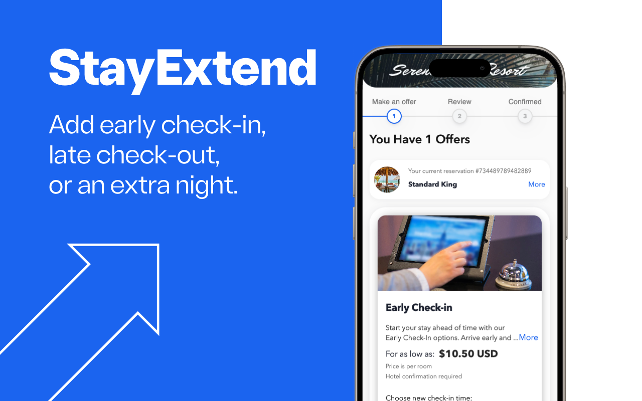 Monetize flexible stay options like early check-in, late check-out, and added nights. StayExtend boosts NOI while improving guest convenience. Offers are delivered based on occupancy and demand, and fulfilled seamlessly via PMS integration.